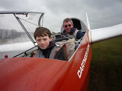 Later in the afternoon, with rain and gale still failing to run up, Daniel Leek arrived with Dad for a trial lesson and, following a 6 minute flight in the Bocian, promptly decided to join!